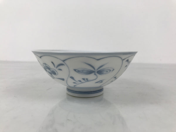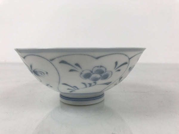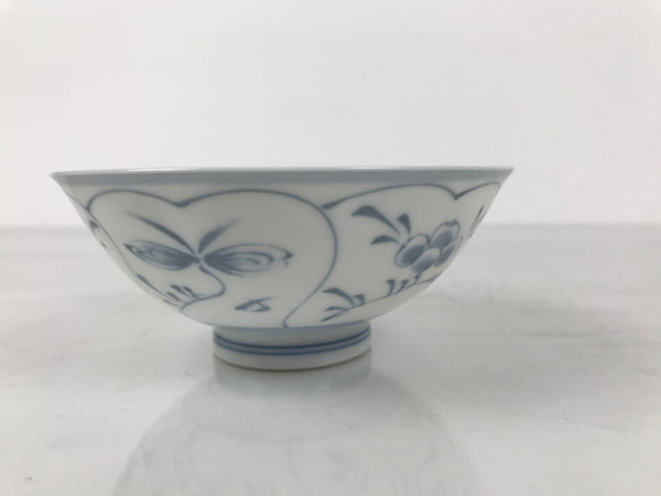 Japanese Porcelain Mino Ware Rice Bowl Chawan Vtg White Blue Plant Vine Tea Y494