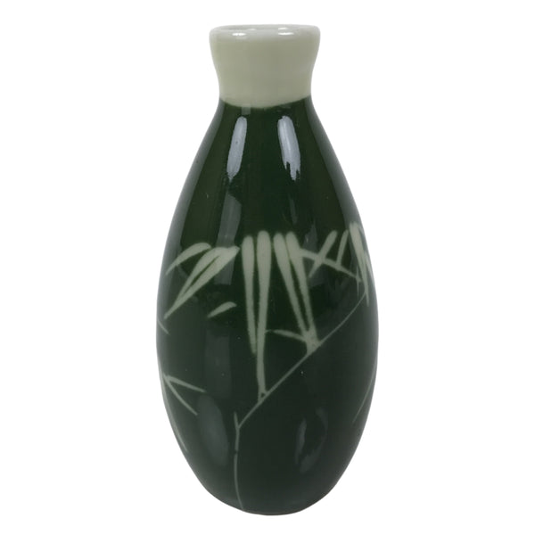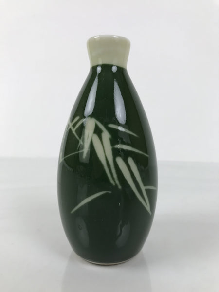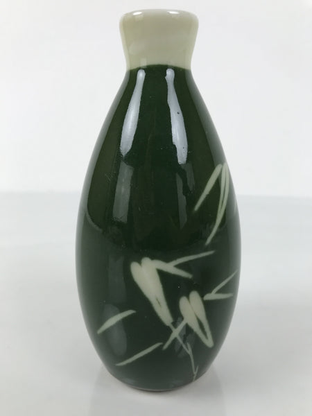 Japanese Porcelain Sake Bottle Tokkuri Vtg Ichi-Go Green Bamboo Leaves TS892