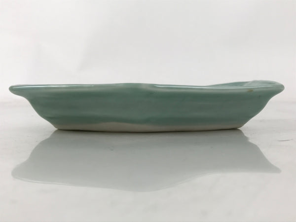 This antique Japanese small narrow hexagonal plate is made of a sturdy porcelain and has a smooth celadon green glaze. The overall design features a slighty raised sayagata pattern. Sayagata is a Buddhist-derived geometric pattern that uses the manji symbol. This type of plate is called kozara and is the perfect size to serve side dishes in a Japanese meal set.