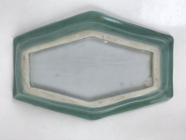 Antique Japanese Porcelain Small Plate Kozara Hexagon Celadon Sayagata Y323