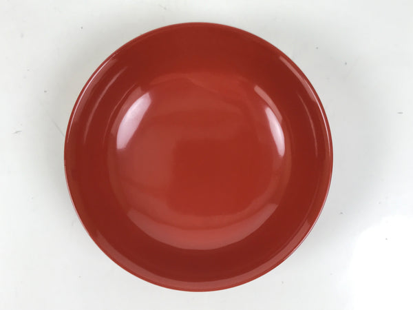 This is a Japanese vintage small bowl, or kobachi, typically used for serving cold salad, fruit, and other side dishes. This round dish is made of resin and mimics traditional lacquerware. It is mostly a gorgeous red color with a black underside.