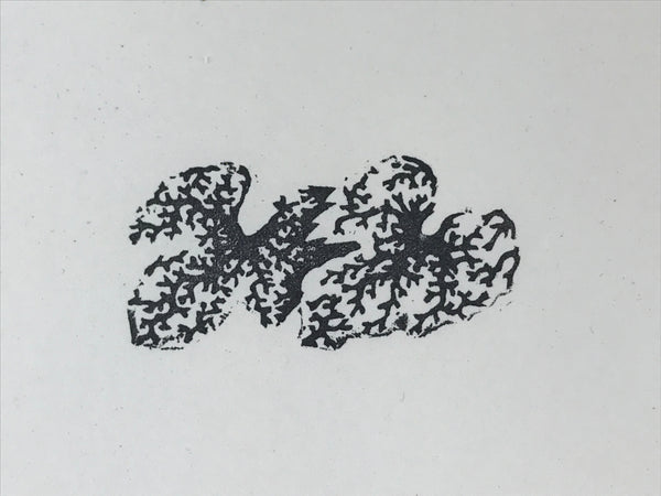 This is a Japanese vintage rubber stamp attached to a sponge-like base. The stamp features a pair of leaves. The sponge base has hardened. This stamp can be used as it or you can remove the rubber to place it on another base.