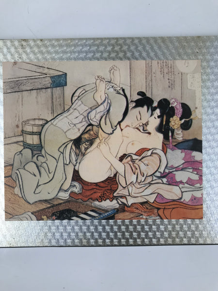 Japanese Shunga Ukiyoe Woodblock Print Reproduction Vtg Erotic Art Kimono FL404