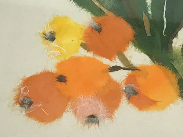 Vintage Japanese Shikishi Washi Paper Art of Mikan Oranges w/ Wooden Frame