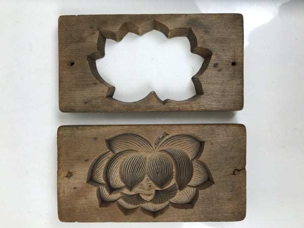 This two-panel kashigata mold is carved with the design of a large, detailed lotus flower in full bloom. This mold can be used to make sweets or as an eye-catching decorative item.