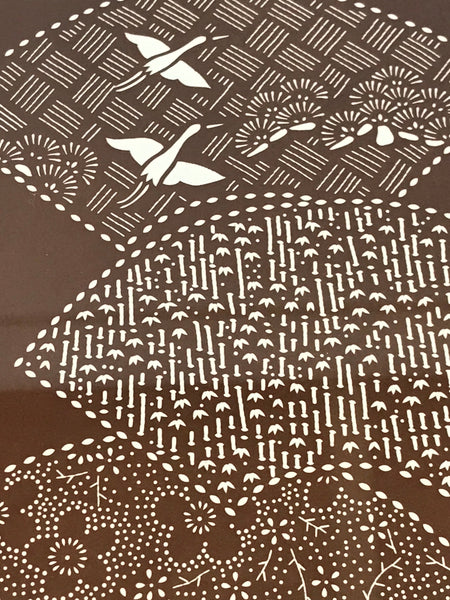 While katagami is typically used for printing images on fabrics such as kimono, it has become a popular item to frame and or further decorate for wall art. As such, its intricate designs made by hand-cutting the paper make it an excellent piece to use in home and office decor.