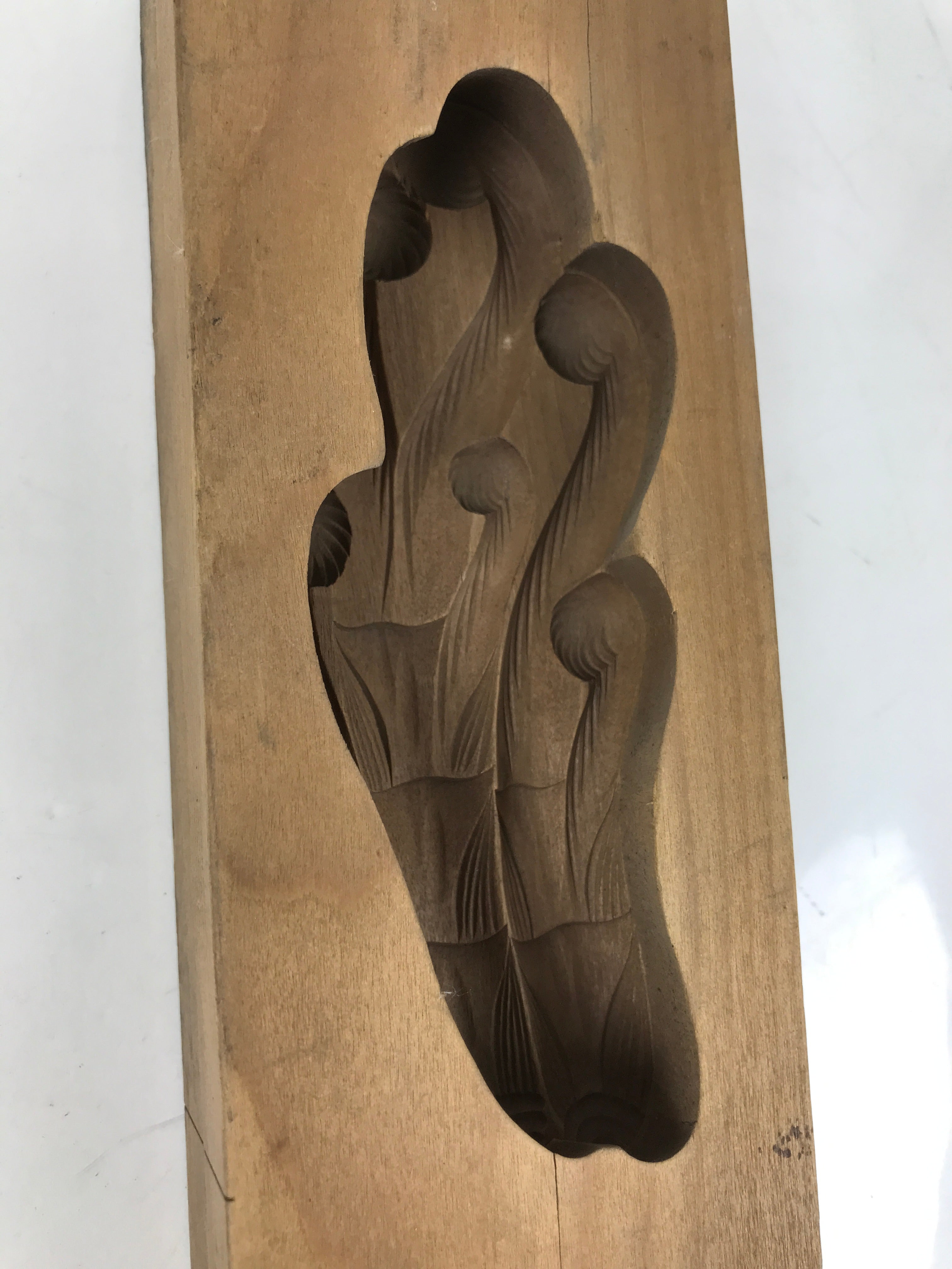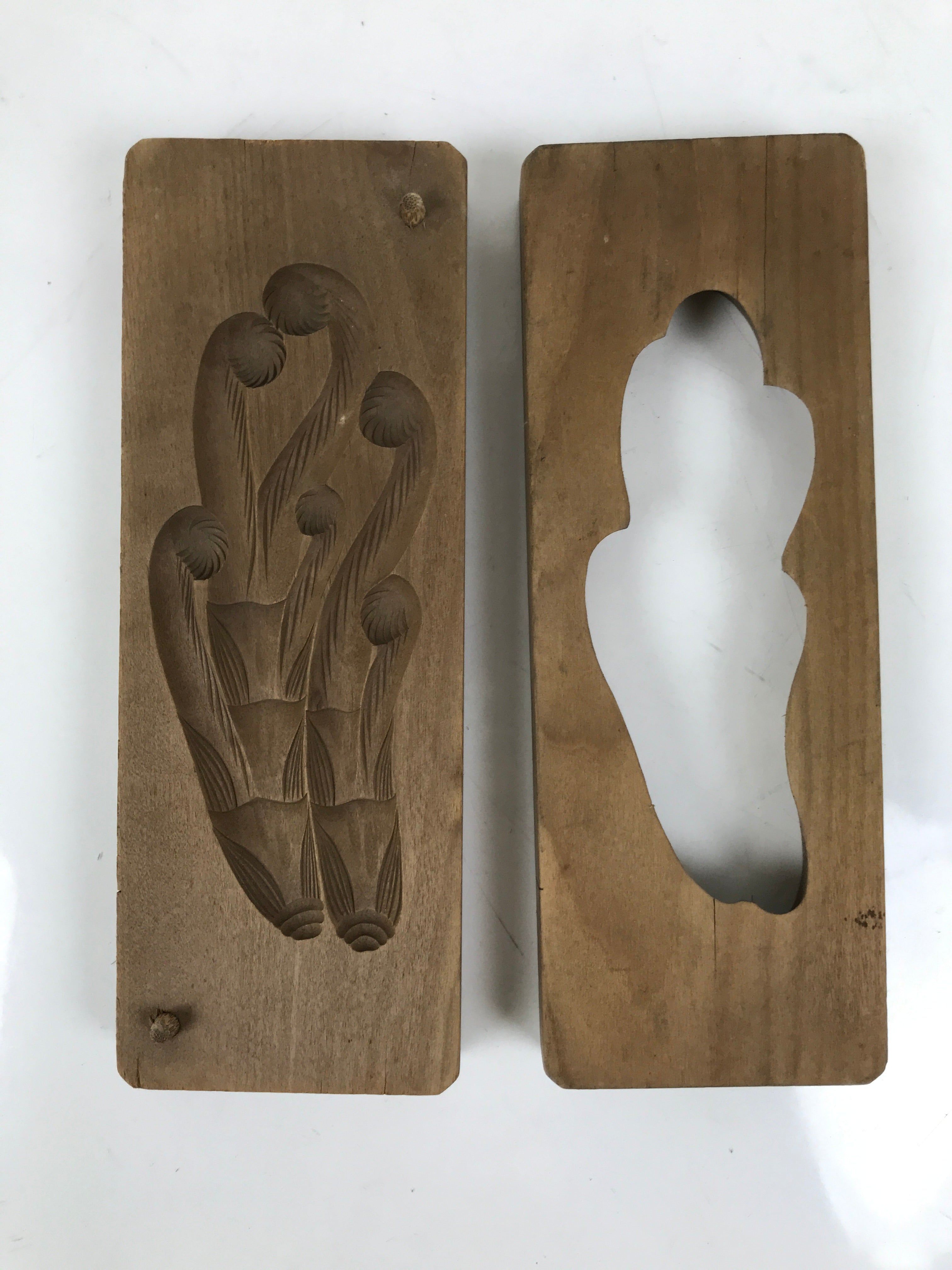 Japanese Wood Carved Kashigata Cake Mold Vtg Sweet Wagashi Warabi Fern Kg596