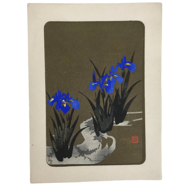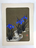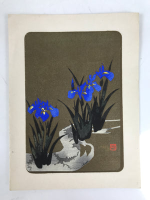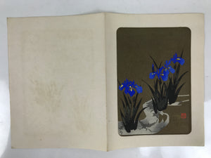 Japanese Woodblock Print Paper Card Vtg Blue Iris Flower Ayame Gold Black P382