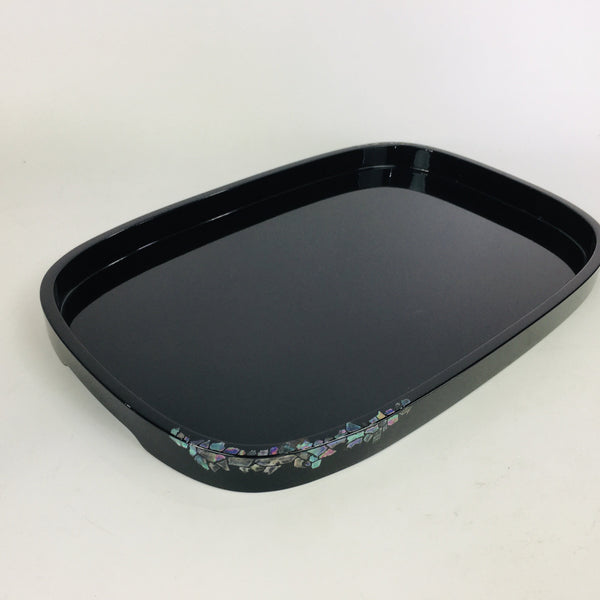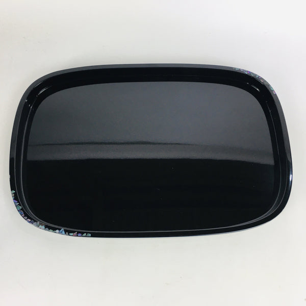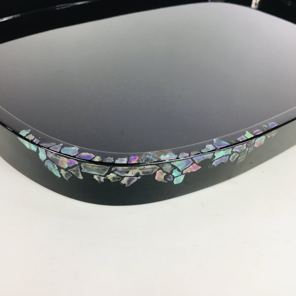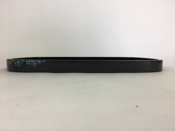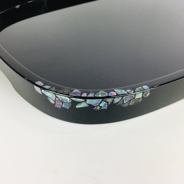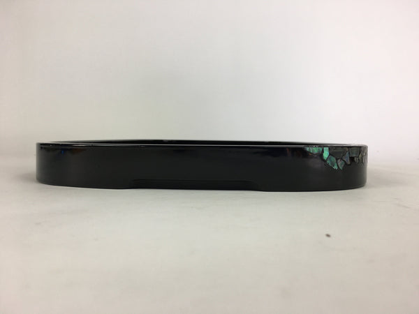 Japanese Wooden Lacquered Tray Obon Vtg Abalone Inlay Oval Shape Black UR509