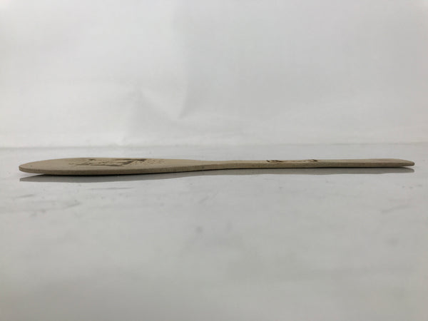 This is a vintage Japanese rice scoop or spatula (shamoji). It is a common household tool for scooping and fluffing rice as well as for spreading rice out for making sushi. It is a souvenir of Ise, Mie. It features a branded design of a famous place in Mie called Meotoiwa (wedded rocks), with sunrise and the Kanji of Ise. It is light brown and is not coated with varnish.