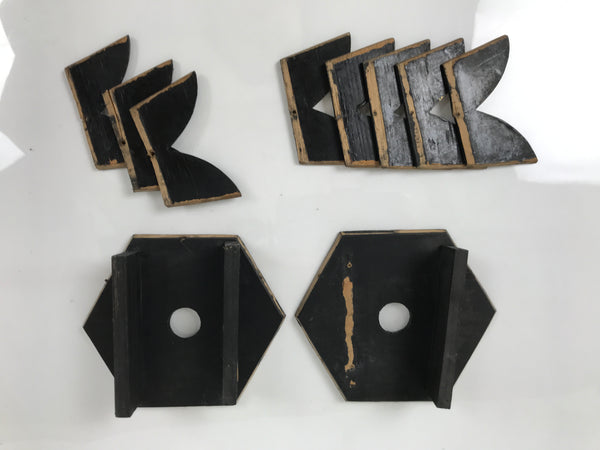 Antique Japanese Buddhist Altar Fitting Wooden Kuge Offering Stand 2pc Box BA816