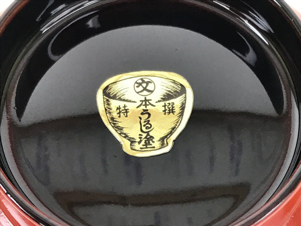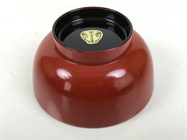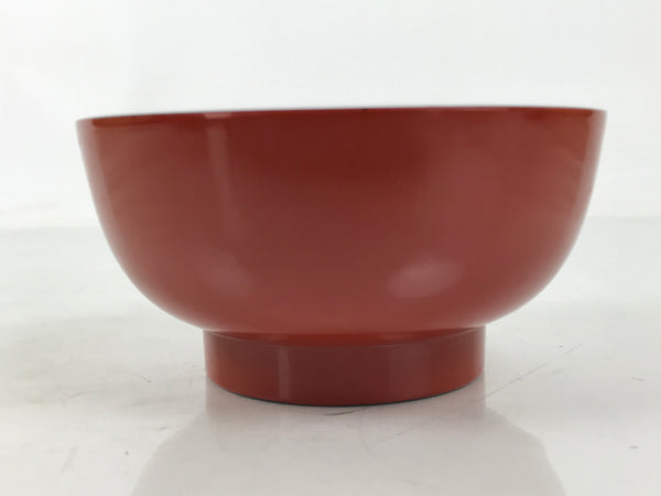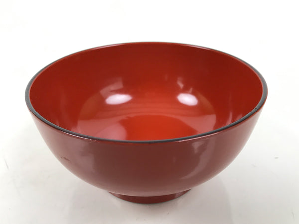 This is a vintage Japanese Wajima wooden lacquered rice bowl. It is mostly red with a black rim and bottom, made with natural lacquer. It is a beautifully handcrafted addition to any traditional Japanese dinnerware set.