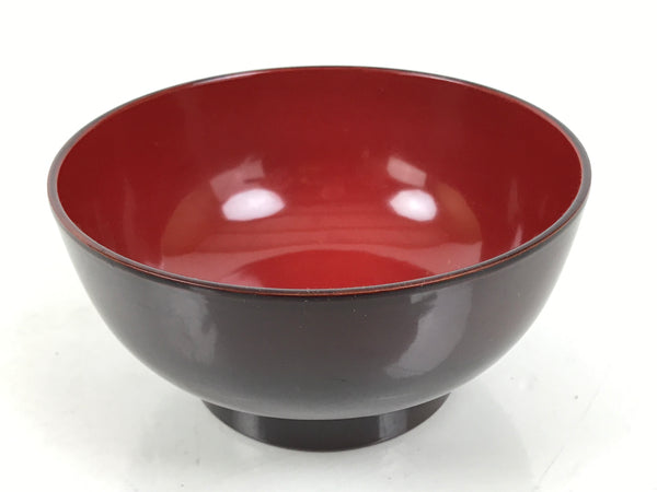This is a vintage Japanese Wajima wooden lacquered rice bowl. It is a classic red on the inside with the rest a rich brown color, made with natural lacquer. It is a beautifully handcrafted addition to any traditional Japanese dinnerware set.