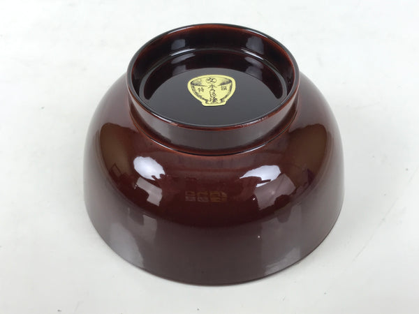 This is a vintage Japanese Wajima wooden lacquered rice bowl. It is a classic red on the inside with the rest a rich brown color, made with natural lacquer. It is a beautifully handcrafted addition to any traditional Japanese dinnerware set.