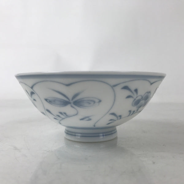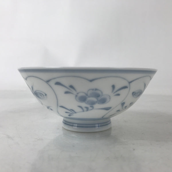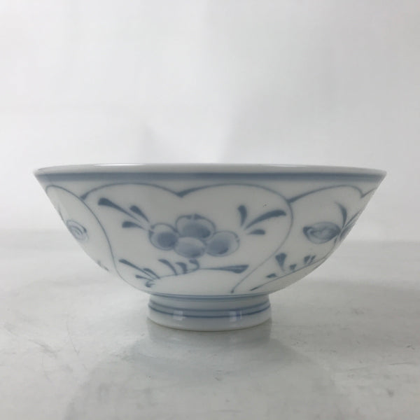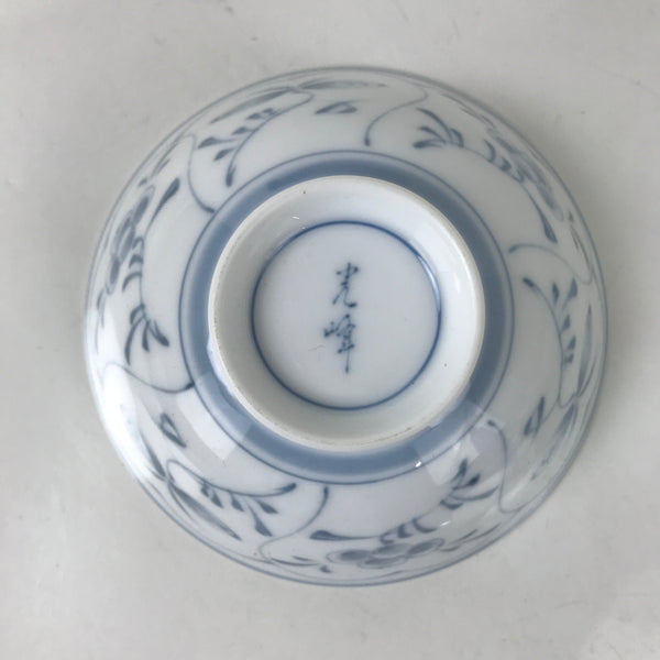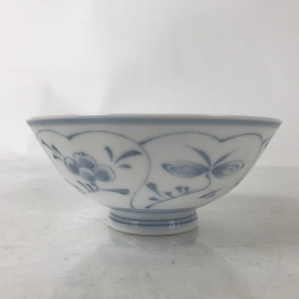 Japanese Porcelain Rice Bowl Owan Vtg Kobachi White Blue Sometsuke Plant Y267