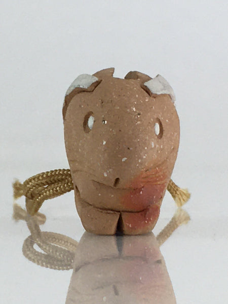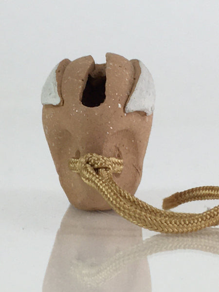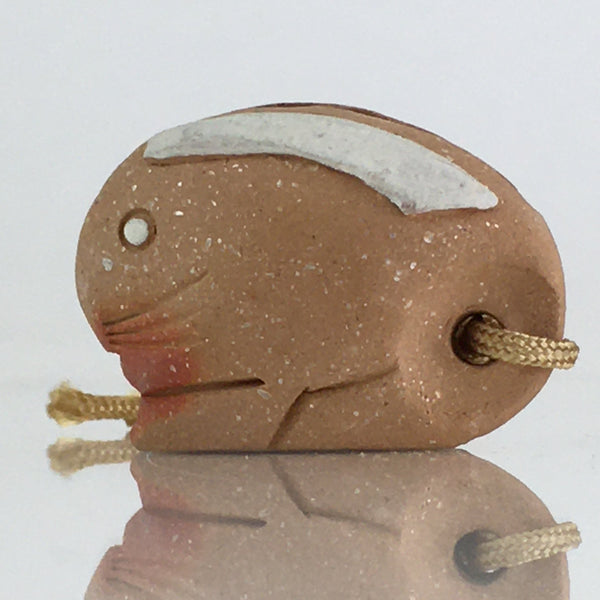 Japanese Clay Bell Dorei Vtg Ceramic Doll Amulet Brown Rabbit DR416