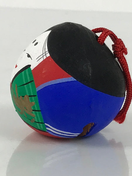 This is a vintage Japanese clay bell, Dorei or Tsuchi-Suzu, in the shape of a Hina doll. The character featured is the princess/empress in an adorable round shape and is painted blue, red, green, and black. Usually these come in a pair, the other half of the set being a princess/empress. It has a small brown clay ball inside and a red string tied at the top. Hina Matsuri is an annual festival on the 3rd of March each year that celebrates girls with elaborate displays of dolls representing royal courts of old times.