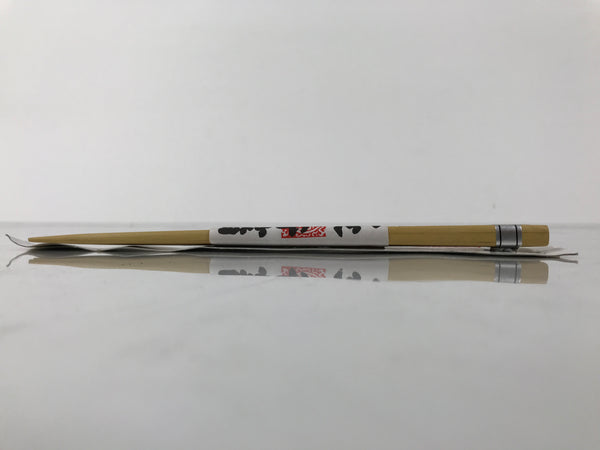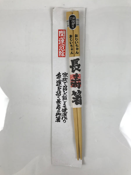 This is a pair of Japanese vintage bamboo chopsticks. The front of the mount paper indicates good fortune and protection from evil, and these longevity chopsticks will bring good luck, so let's eat rice and get healthier with family. There are explanations of bad manners for using chopsticks on the backside of the mount. On the wrapping paper, it says longevity chopsticks. The inscription on the chopstick means grandfather. The pair of chopsticks is unused.
