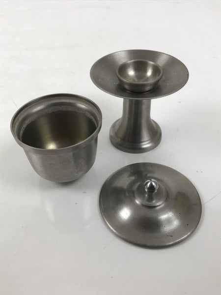 Japanese Buddhist Altar Metal Water Offering Cup Tea Chaki Silver Stand BA639