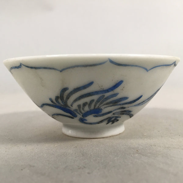 Japanese Porcelain Sake Cup Guinomi Sakazuki Vtg Phoenix Blue White GU788