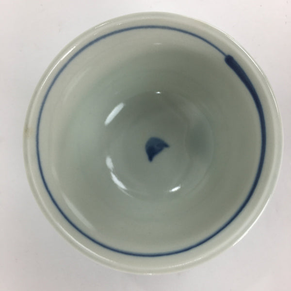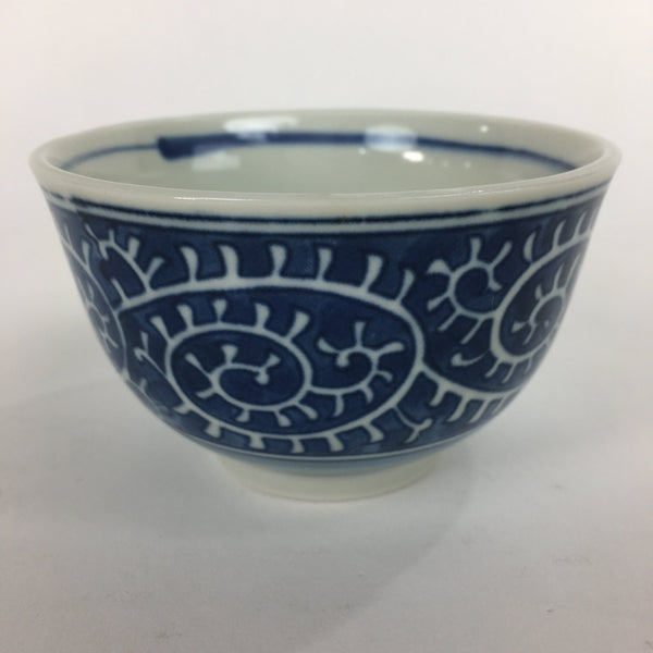 Japanese Porcelain Teacup Yunomi Vtg White Blue Karakusa pattern Sencha TC188