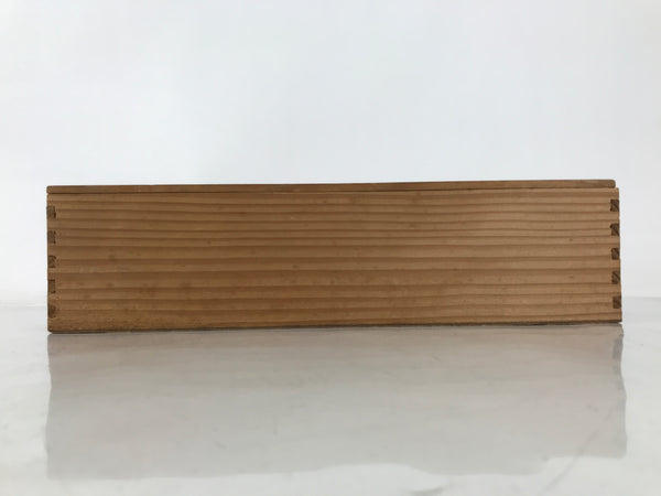 Japanese Wooden Lidded Pottery Storage Box Inside 35.5x8x8.5cm Teacup Brown X185