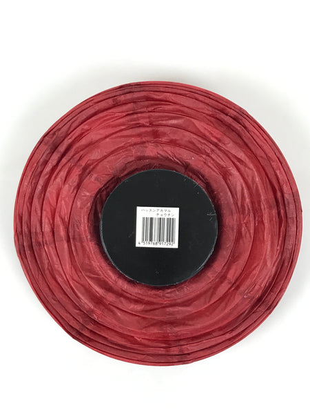 This is a vintage Japanese paper hanging lantern called chochin. This round lantern is made with thin hot pink washi paper, a thin paper, bamboo, and wire frame, and a wire handle. It has a simple candle holder spike on the inside.