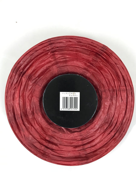 This is a vintage Japanese paper hanging lantern called chochin. This round lantern is made with thin hot pink washi paper, a thin paper, bamboo, and wire frame, and a wire handle. It has a simple candle holder spike on the inside.
