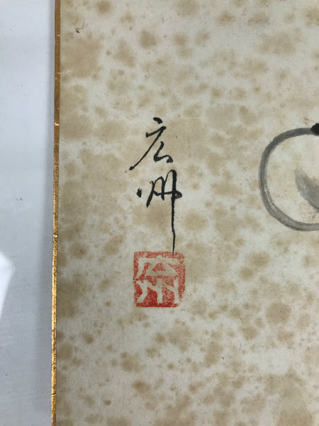 This Japanese shikishi art board features a portrait of Hotei sitting next to his huge sack. Hotei is one of the Seven Lucky Gods, god of fortune. Hotei was also a Buddhist monk. This shikishi is signed with a name and a red seal.