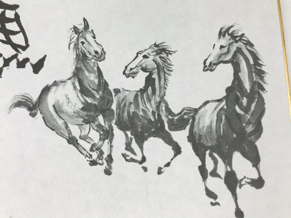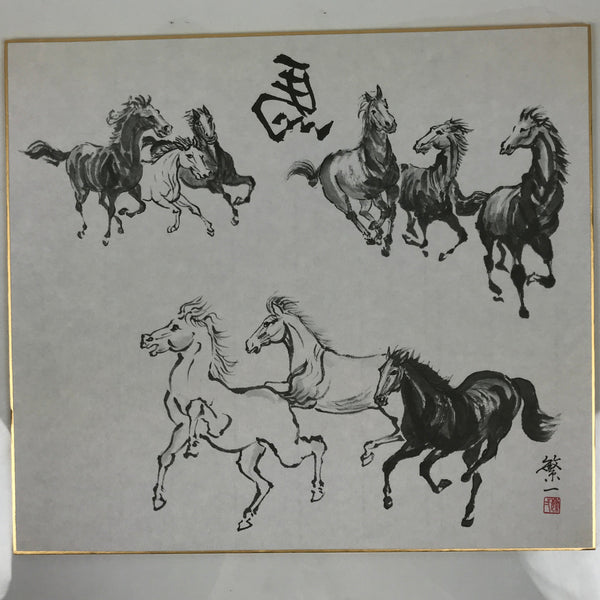 Japanese Shikishi Art Board Reproduction Horse Zodiac Calligraphy Black A815