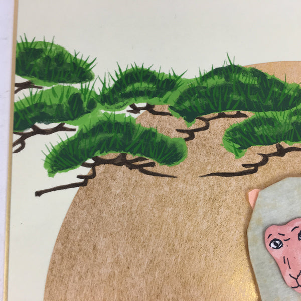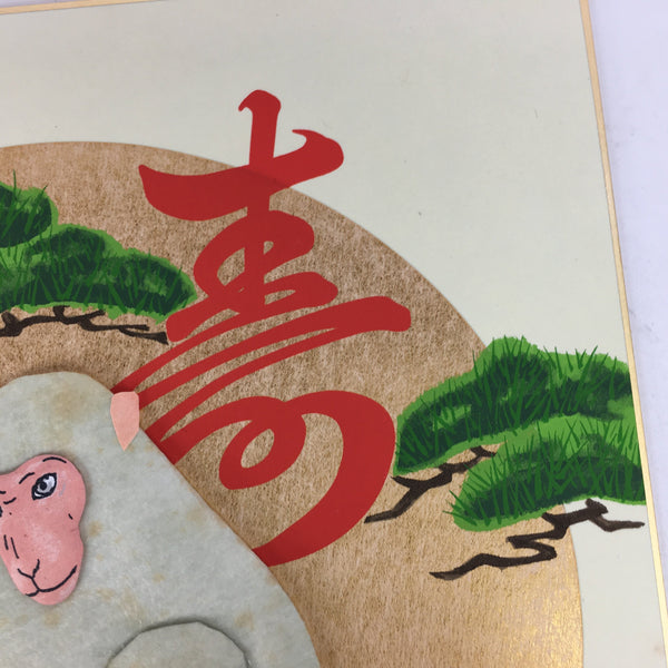 Japanese Art Board Vtg Shikishi Paper Handmade Embossing Oshie Monkey A340