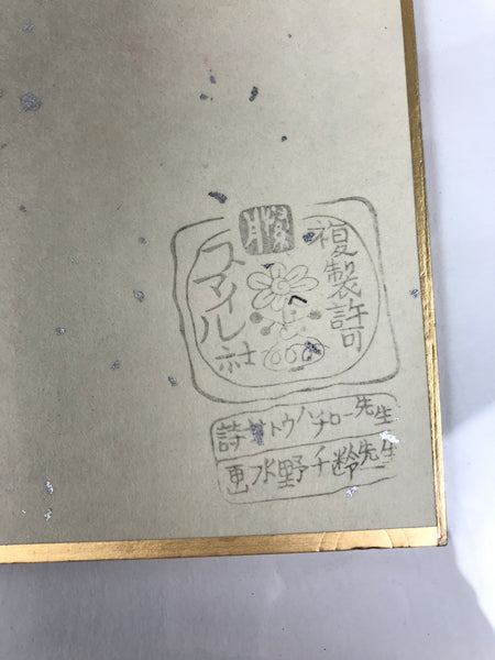 There are three basic types of shikishi paper—calligraphy (poem, haiku) only, calligraphy with pictures, and pictures only. Since the Heian period, people have been writing waka and haiku on Shikishi paper (various sizes), but in the Meiji period, they started using paper of the current size. In the current day, shikishi paper/boards are used for autographs of celebrities and also commemorative messages to friends, coworkers, and classmates.