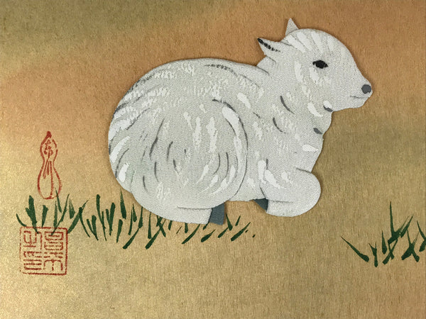 Japanese Zodiac Shikishi Art Board Vtg Oshie Zaiku Fabric Silk Craft Sheep A562