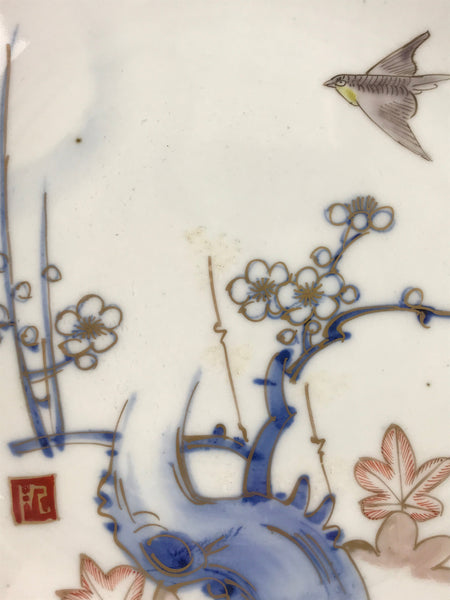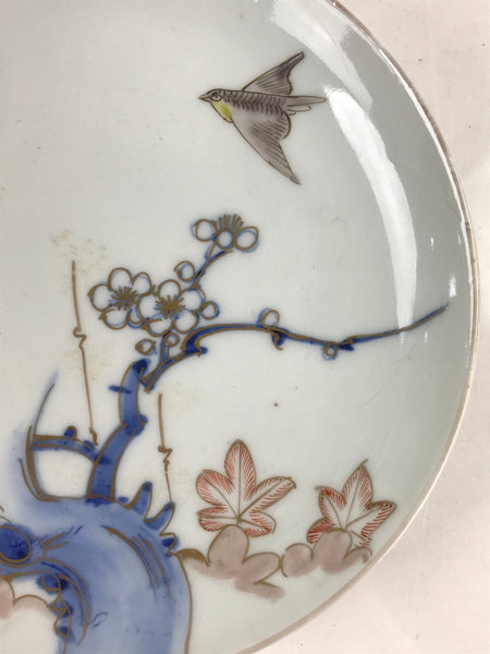 Antique Japanese Koimari Imari Plate Plum Blossom Nightingale Kozara Gold PY380