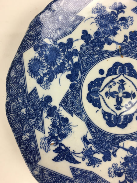 Antique Japanese Porcelain Plate Pottery Sometsuke Blue Sara White PP955