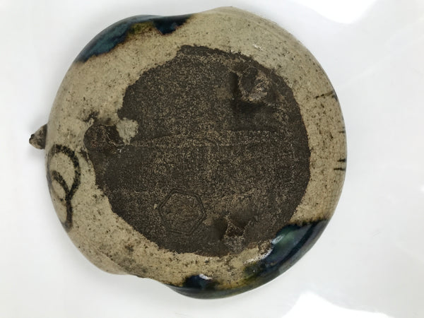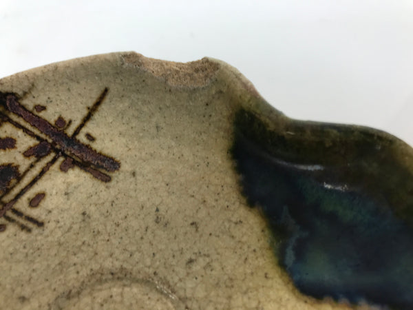 Japanese Ceramic Oribe Small Plate Kozara Vtg Side Dish Brown Green Y477