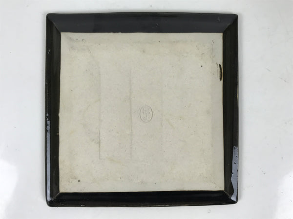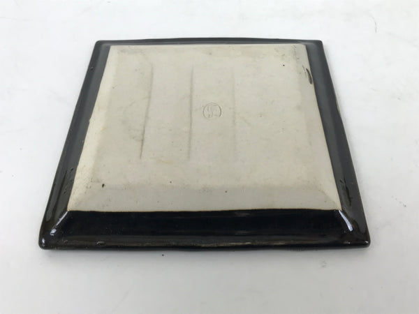 Japanese Ceramic Small Plate Kozara Vtg Sara Square Pottery Black Leaves Y436