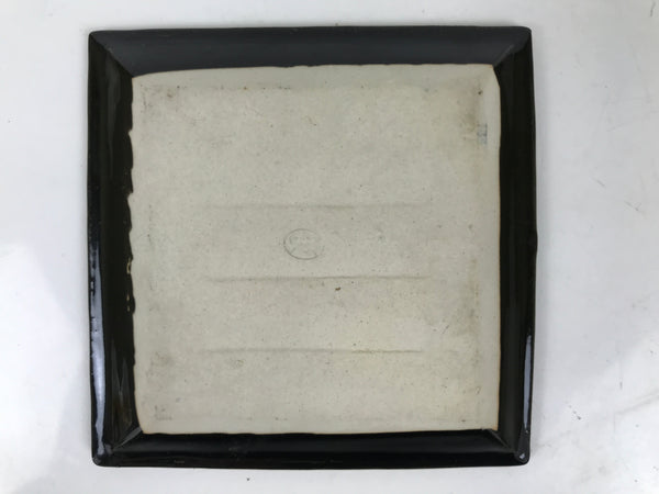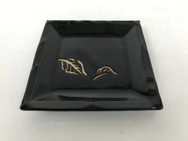 Japanese Ceramic Small Plate Kozara Vtg Sara Square Pottery Black Leaves Y437