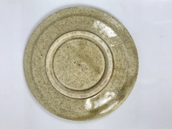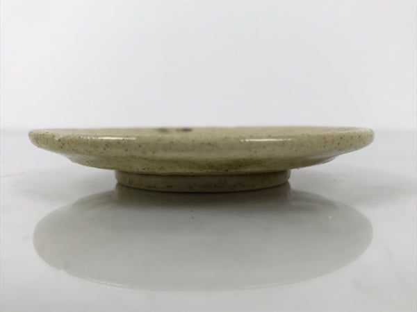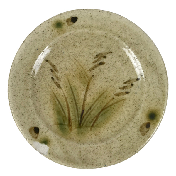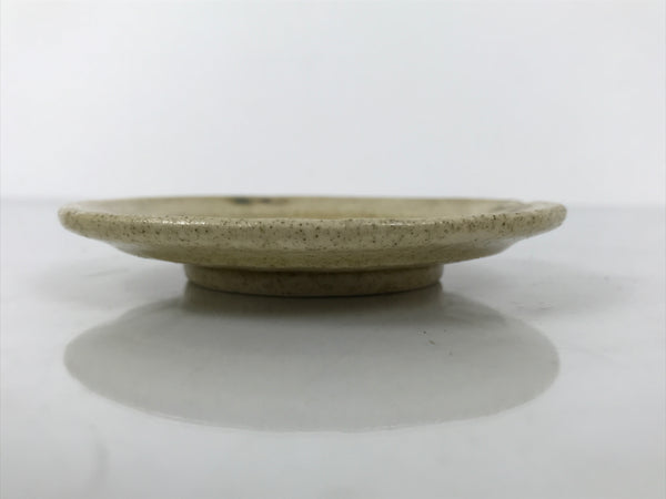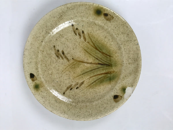 Japanese Ceramic Small Plate Mamezara Side Dish Vtg Beige Green Plants Y466