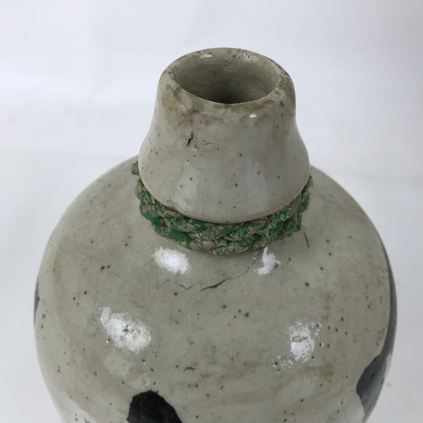 Antique Japanese Ceramic Sake Bottle Kayoi-Tokkuri Gray Black Kanji String TS803