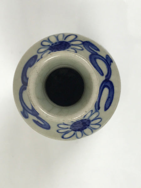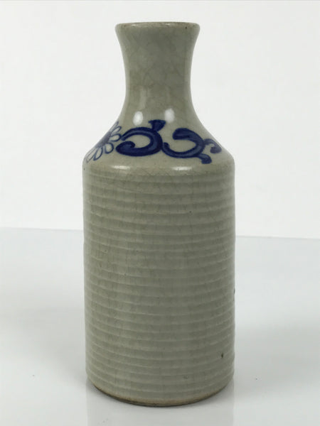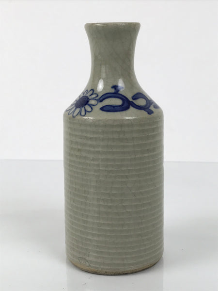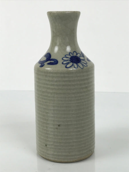 Japanese Ceramic Sake Bottle Tokkuri Pottery Sometsuke Gray Blue Sunflower TS836