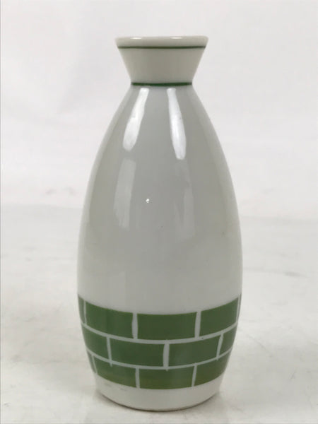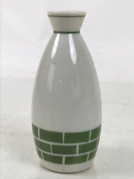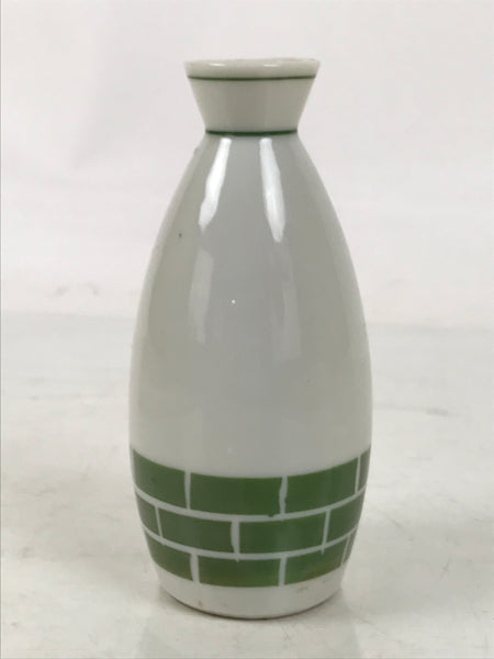 This is a Japanese vintage porcelain sake bottle, or Tokkuri. It is mostly white with a green brick-like pattern at the base and simple green lines at the neck, rim, and base. Its compact size makes it easy to use daily for beverages or as a small flower vase.