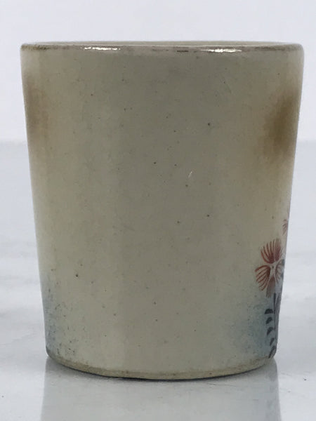 This is a vintage Japanese Kutani porcelain sake cup. This particular type of cup is the standard shape, also called straight-type. In terms of size, it is also called ochoko. This beautiful imari sake cup is fully decorated with precise gold linework as well as large, raised-texture, white blooming peony flower. It has the Kutani marking on the bottom.