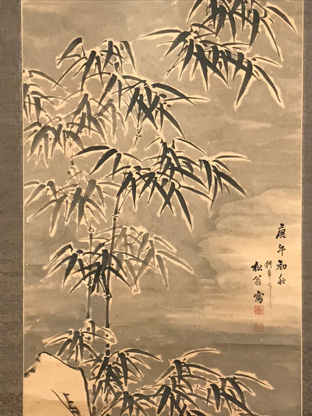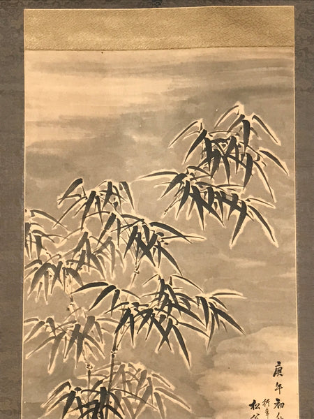 Japanese Hanging Scroll Kakejiku Vtg Bamboo Leaves Monochrome Black Ink KJ80