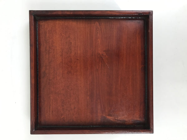 This is an antique Japanese lacquered wooden table or Ozen. This low square table has four walnut legs and is called Kurumi-zen.  This item can be used as a small table or a serving tray. A signature is on the back.