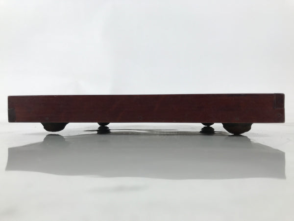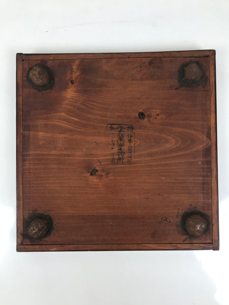 This is an antique Japanese lacquered wooden table or Ozen. This low square table has four walnut legs and is called Kurumi-zen. This item can be used as a small table or a serving tray. A signature is on the back.