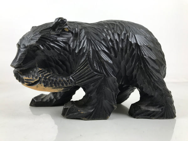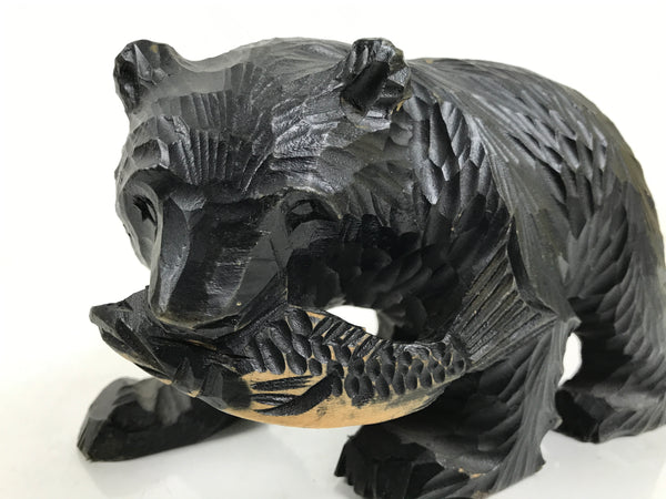 Famously from Hokkaido and northern Japan, this intricately hand-carved bear statue with a fish in its maw is a traditional Ainu folk handicraft.