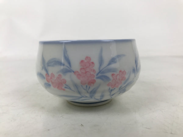 Japanese Arita Porcelain Teacup Vtg Berry Leaves Pink Blue Sencha Yunomi TC581