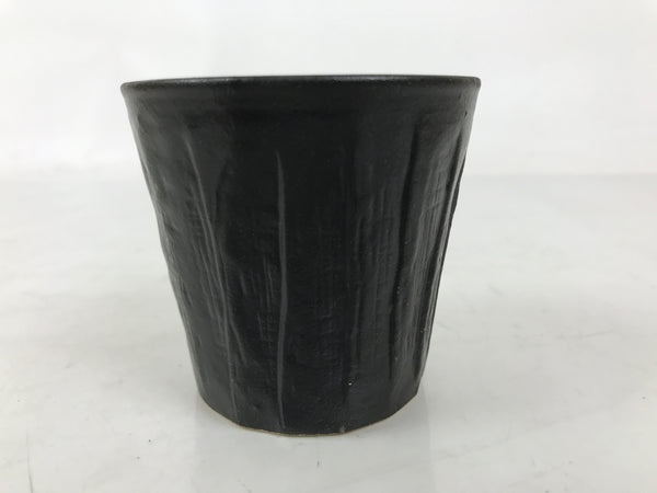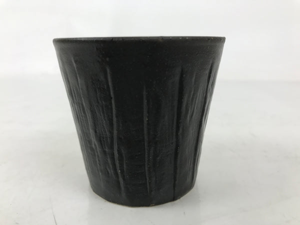Japanese Ceramic Yunomi Teacup Simple Pottery Vtg Black Sencha Yakimono TC585