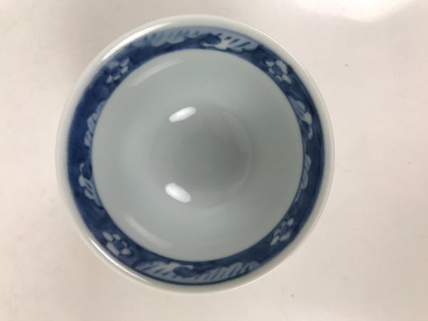 Japanese Porcelain Yunomi Teacup Pottery Vtg White Blue Hishi Fish Sencha TC587